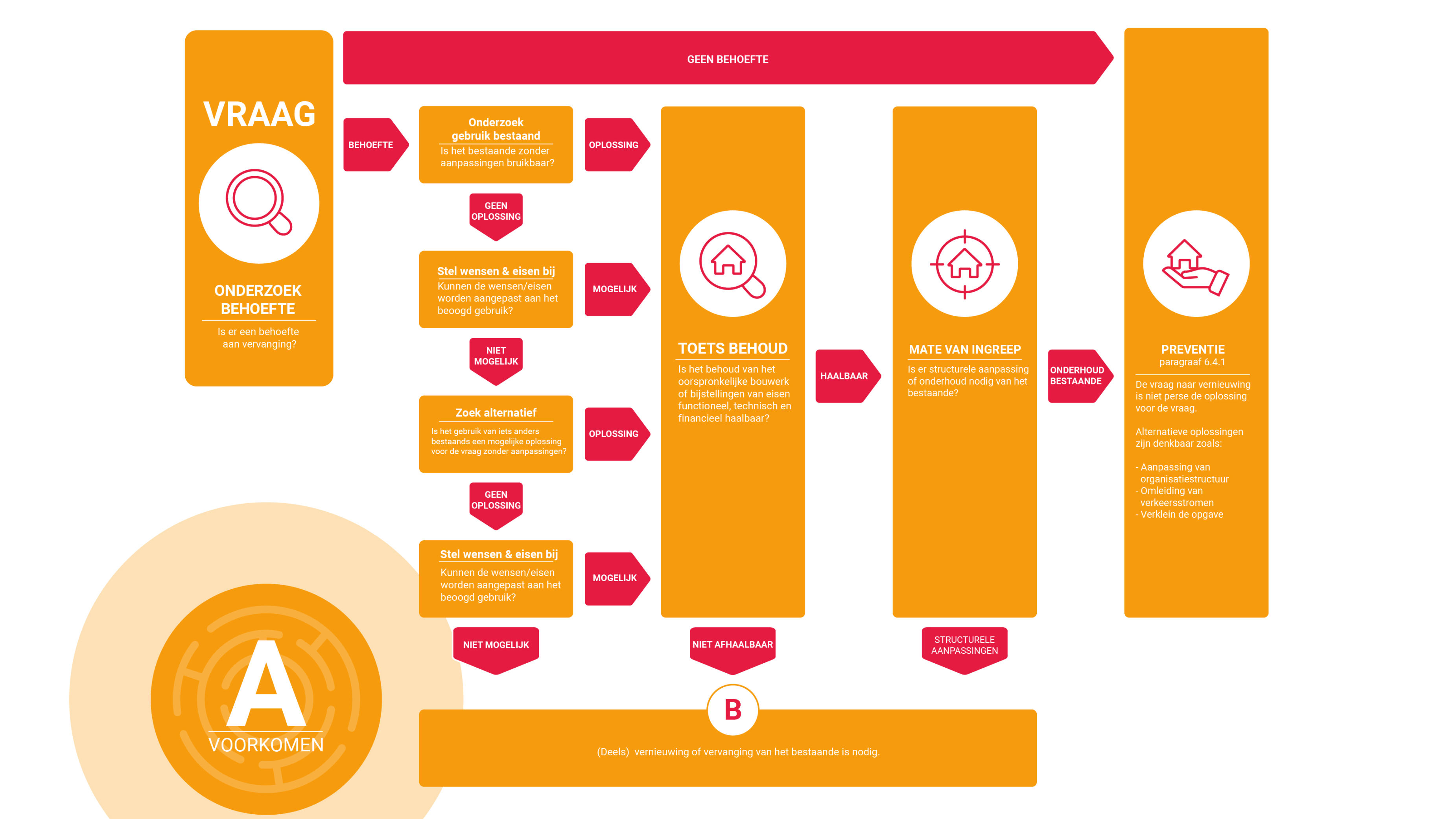 A – Voorkomen: niet bouwen, door een geheel andere oplossing te leveren of een bestaand bouwwerk te hergebruiken.
