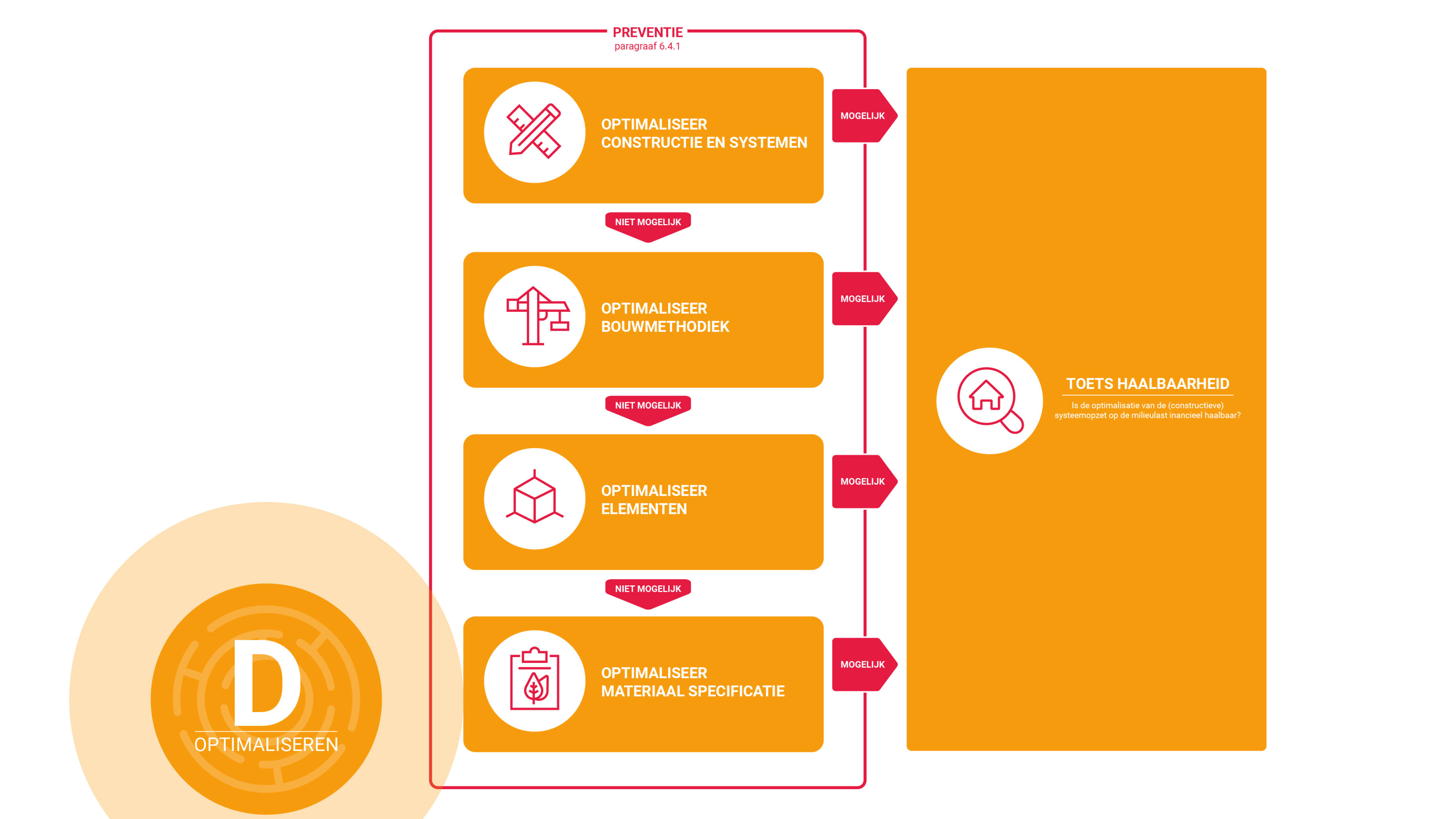 Er wordt in deze leidraad geen voorkeur gegeven aan de ene of andere strategie, omdat de haalbaarheid en het nut van individuele strategieën van het project afhangen. Wel proberen we een logische volgorde voor het overwegen van strategieën in de routekaart te geven. In het ontwerpproces moeten op bepaalde momenten keuzes worden gemaakt om de strategieën te realiseren. De routekaart is een handig middel om inzicht in dit proces in te krijgen. Het is een doorontwikkeling van een stappenplan voor duurzame constructies van Terwel & Crielaard, 2023.